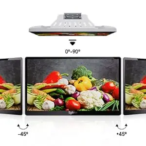 Our user-friendly design boasts touch buttons and a convenient mount. The screen is horizontally adjustable (±45 degrees) under the cabinet and can rotate 0-90 degrees at the front and rear. When not in use, simply fold it upward for space-saving storage, ensuring a clutter-free kitchen.