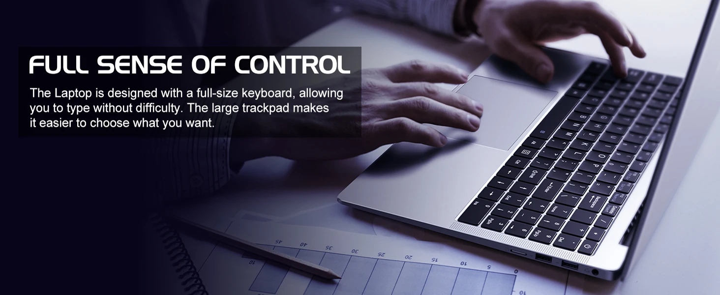 4. Full sense of control: The Laptop is designed with a full-size keyboard, allowing you to type without difficulty. The large trackpad makes it easier to choose what you want