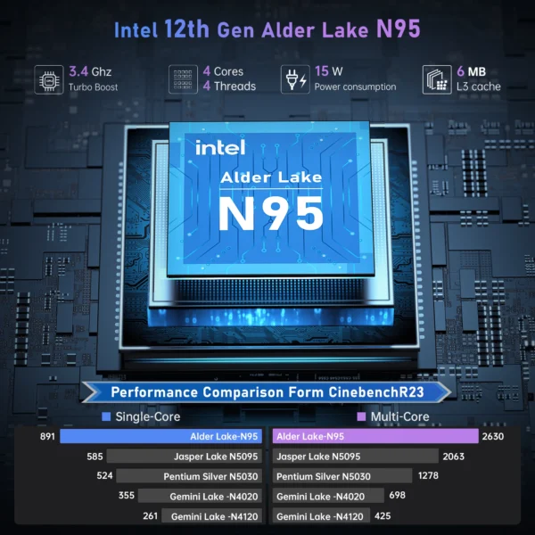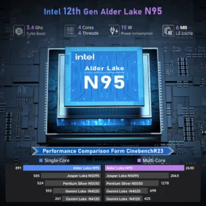 Fast and efficient performance: Powered by the latest LPDDR4 technology paired with Intel 12th Alder Lake N95 CPU, 16GB RAM and 512GB M.2 SSD, it outperforms its predecessors with faster data transfer speeds and improved multitasking functions. Whether you're tackling complex tasks or running multiple apps at once, this laptop is up to the challenge.