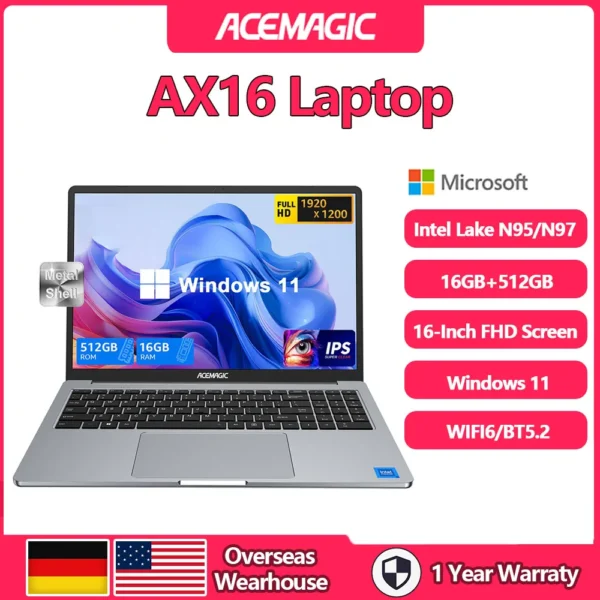Uninterrupted productivity: the 7.6 V/5000 mAh lithium battery of the ACEMAGIC AX16 provides over six hours of continuous power supply, so you can stay productive all day. Improve your experience with the ACEMAGIC AX16 – We offer a 2-year product satisfaction guarantee and lifetime technical support. Contact us with any questions or concerns.
